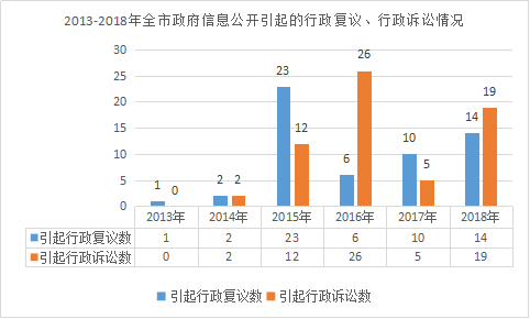 ???? ????五、政府信息公開收費及減免情況 2018年,我市未向政府信息公開申請人收取檢索、復制、郵寄等費用。 ????六、政府信息公開行政復議、行政訴訟情況 全市因政府信息公開行為提出的行政復議14件,維持具體行政行為12件,被依法糾錯2件。因政府信息公開行為引起的行政訴訟19件,駁回原告訴訟請求16件,被依法糾錯1件,其他情形2件。