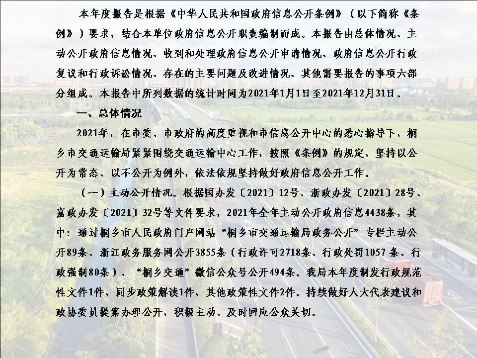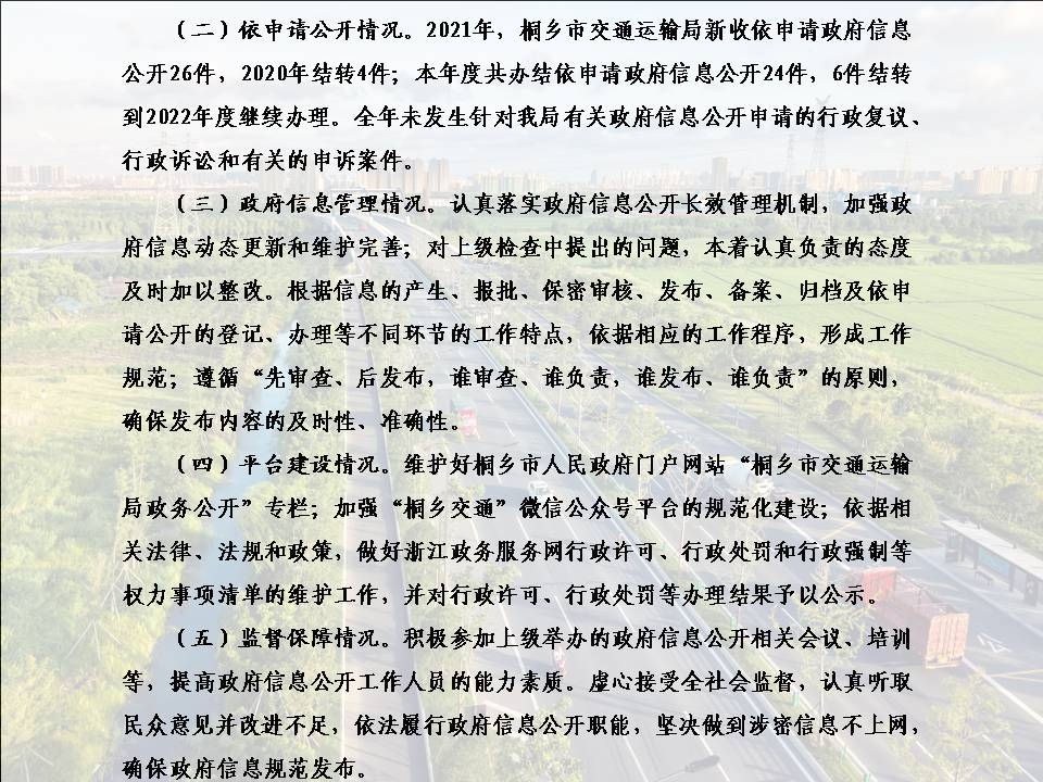 桐鄉市交通運輸局2021年度政府信息公開工作年度報告