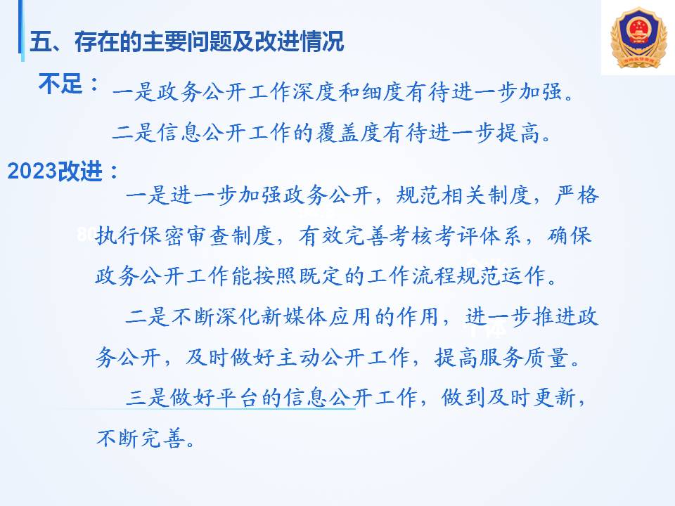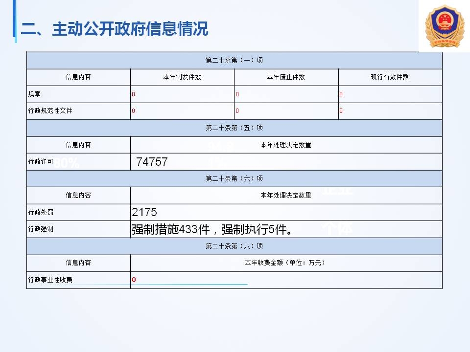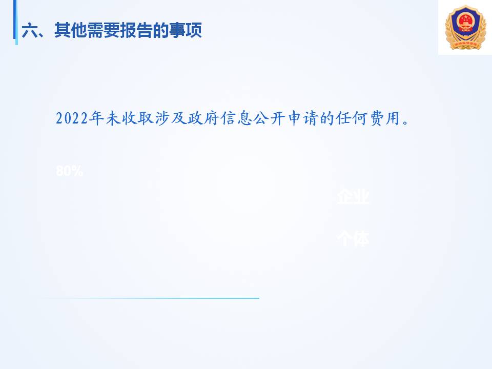 五、存在的主要問題及改進(jìn)情況 (一)存在的主要問題。 2022年,我局政務(wù)公開工作雖然取了一定的成效,但仍存在一些不足,主要表現(xiàn)在:一是政務(wù)公開工作深度和細(xì)度有待進(jìn)一步加強(qiáng),二是信息公開工作的覆蓋度有待進(jìn)一步提高。 (二)改進(jìn)措施。 2023年將從以下幾個(gè)方面進(jìn)一步做好政務(wù)公開工作。一是進(jìn)一步加強(qiáng)政務(wù)公開,規(guī)范相關(guān)制度,嚴(yán)格執(zhí)行保密審查制度,有效完善考核考評(píng)體系,確保政務(wù)公開工作能按照既定的工作流程規(guī)范運(yùn)作。二是不斷深化新媒體應(yīng)用的作用,進(jìn)一步推進(jìn)政務(wù)公開,及時(shí)做好主動(dòng)公開工作,提高服務(wù)質(zhì)量。三是做好平臺(tái)的信息公開工作,做到及時(shí)更新,不斷完善。 六、其他需要報(bào)告的事項(xiàng) 2022年未收取涉及政府信息公開申請(qǐng)的任何費(fèi)用。 ? 桐鄉(xiāng)市市場(chǎng)監(jiān)督管理局 2022年12月31日 |