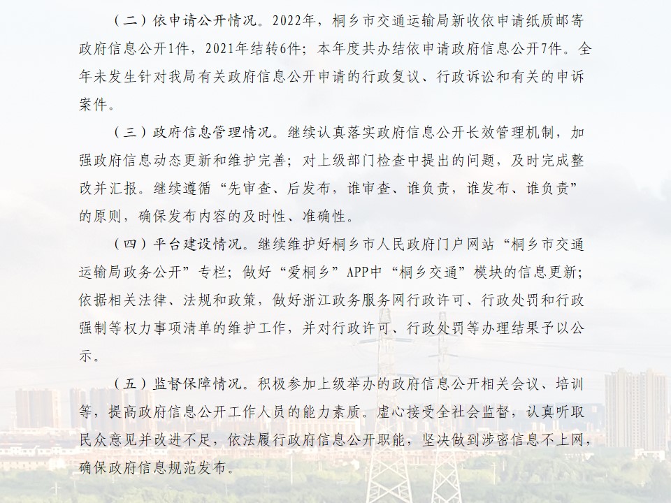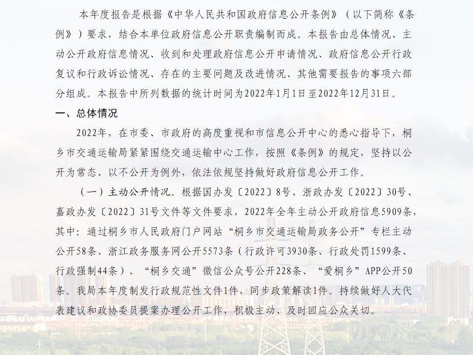 桐鄉市交通運輸局2022年度政府信息公開工作年度報告
