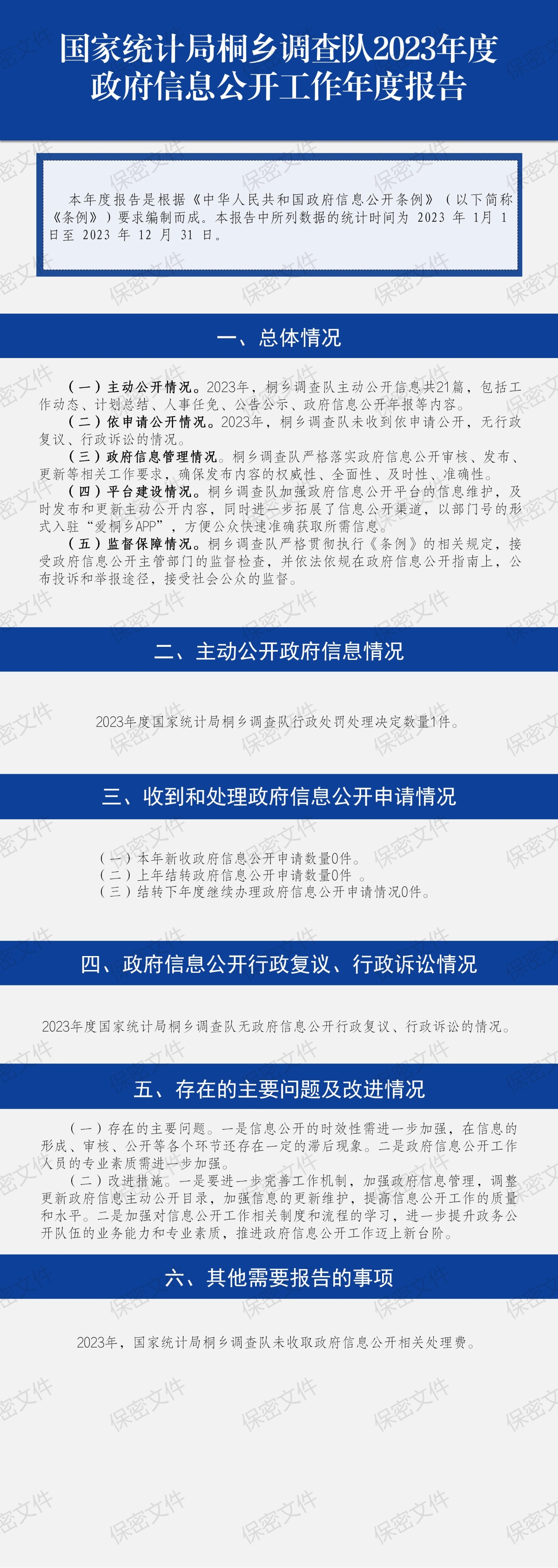國家統計局桐鄉調查隊2023年度政府信息公開工作年度報告