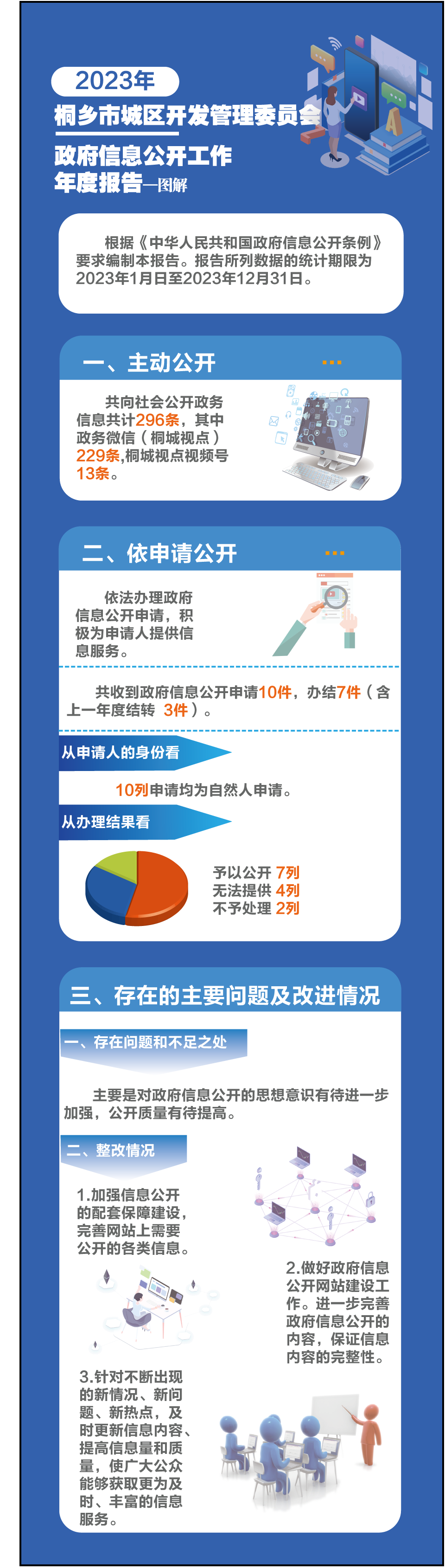 桐城委、桐城集團2023年度政府信息公開工作年度報告 ? 一、總體情況 (一)主動公開情況。桐城委、桐城集團高度重視,把貫徹落實《中華人民共和國政府信息公開條例》作為一項重要工作內(nèi)容來抓,并根據(jù)政務(wù)公開要點完成落實相關(guān)政策,我委政務(wù)公開政府信息公開工作領(lǐng)導(dǎo)小組充分發(fā)揮作用,分工進一步明確。領(lǐng)導(dǎo)小組負責(zé)指導(dǎo)、監(jiān)督檢查制度落實情況等工作,督促按照制度做好主動公開、依申請公開政府信息的范圍和程序,并做好材料送交、公開信息保密審查,信息更新發(fā)布等工作。截至2023年12月底,桐城委、桐城集團主動公開政務(wù)信息共計296條,其中政務(wù)微信(桐城視點)229條,桐城視點視頻號13條。 (二)依申請公開情況。2023年度我委收到依申請公開信息要求共計10條。我委在收到申請后依法審查,并在法定期限內(nèi)答復(fù)申請人。 (三)政府信息管理情況。信息公開工作是一項系統(tǒng)工程,必須實行統(tǒng)一領(lǐng)導(dǎo),建立多方參與、密切配合、齊抓共管、合理運行的有效機制。我委十分重視政務(wù)公開工作,將政務(wù)公開工作擺上重要議事日程。辦公室和各職能科室、下屬單位共同負責(zé)推進、指導(dǎo)、協(xié)調(diào)本委的政府信息公開工作,辦公室承擔(dān)政府信息主動公開日常工作,其他職能科室及下屬單位承擔(dān)政府信息依申請公開日常工作。管委會政府信息公開網(wǎng)站發(fā)布信息實施專人負責(zé),及時更新網(wǎng)站政府公開信息,及時上報相關(guān)材料、統(tǒng)計報表和本部門政府信息公開工作年度報告等。通過加強組織機構(gòu)建設(shè),做到了“主要領(lǐng)導(dǎo)親自抓、分管領(lǐng)導(dǎo)具體抓、專門機構(gòu)負責(zé)抓”的工作機制,將責(zé)任明確到人,做到了一級抓一級,層層抓落實,為政府信息公開工作長期有效的開展提供了組織保障。 (四)平臺建設(shè)情況。桐城委、桐城集團將信息公開的內(nèi)容和速率作為信息公開工作的核心,嚴(yán)格按照《條例》及市政務(wù)信息公開化的要求,及時更新政務(wù)動態(tài)信息,還結(jié)合管委會實際,以公開欄、遠程教育及電子屏等為載體進行公開。在抓好信息全面公開的同時,講求實效,突出重點,主要是圍繞群眾關(guān)注的熱點、難點問題進行公開,圍繞保證群眾民主監(jiān)督權(quán)力,抓好重大決策的公開,力求提高信息公開的運作效率,有效保證了網(wǎng)站信息更新速率和數(shù)量。 (五)監(jiān)督保障情況。強化保密審查,信息內(nèi)容正確進一步明確了主動公開的內(nèi)容范圍,完善各項工作制度,嚴(yán)格落實《條例》規(guī)章制度,堅持“先審查、后公開”原則,嚴(yán)格執(zhí)行政府信息公開前保密審查制度,按照要求通過領(lǐng)導(dǎo)審核后再由專人發(fā)布,確?!吧暇W(wǎng)信息不涉密,涉密信息不上網(wǎng)”。每月按時做好政府信息公開的管理和發(fā)布工作,確保全面、及時地做好全年政府公開信息的報送工作。 二、主動公開政府信息情況 ?