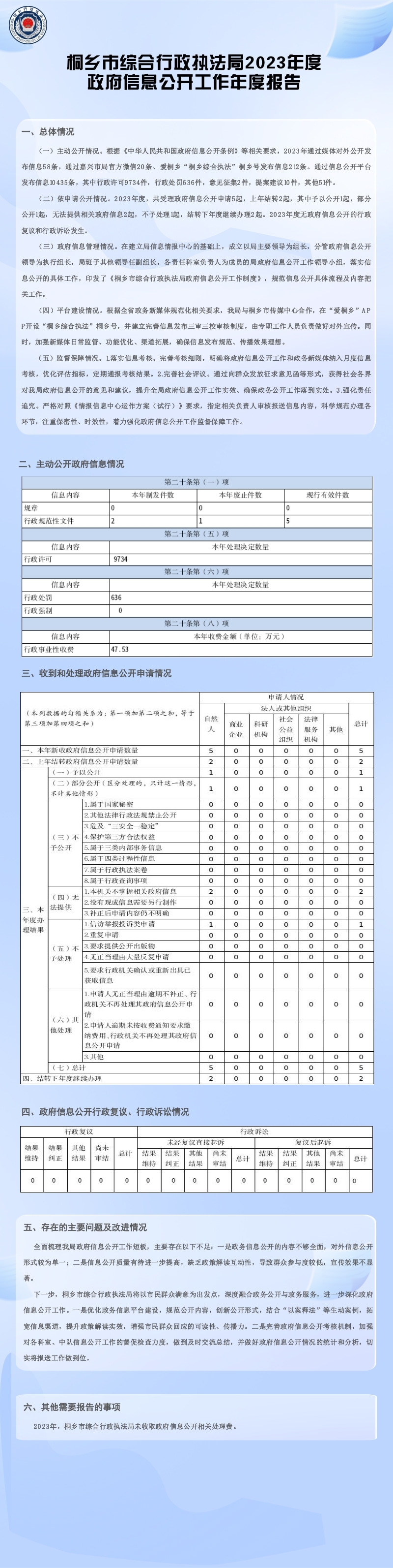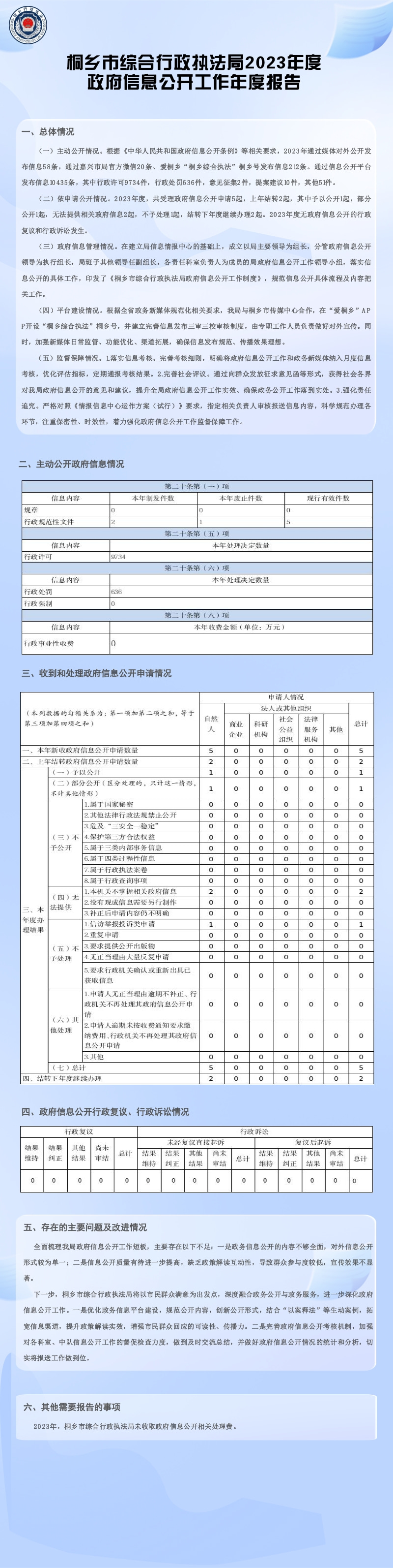 桐鄉市綜合行政執法局2023年度政府信息公開工作年度報告