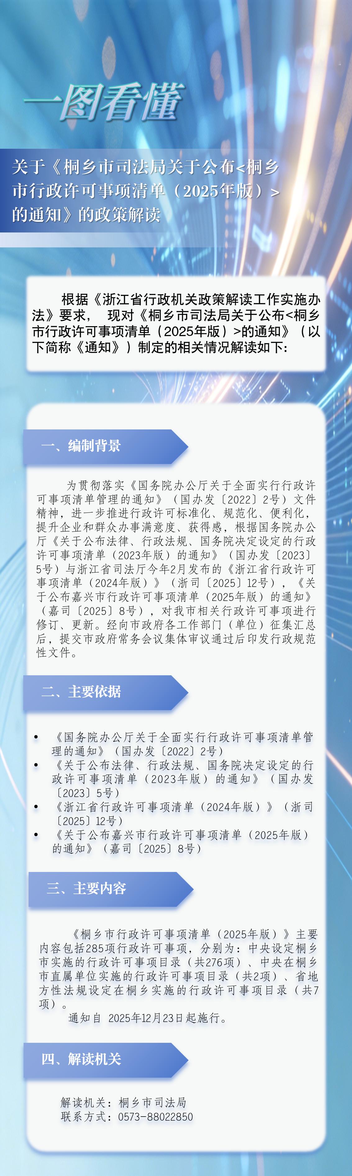 桐鄉市司法局關于公布《桐鄉市行政許可事項清單(2025年版)》的通知政策解讀