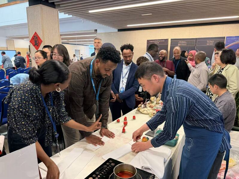 豐同裕帶去的藍印花布文創產品。 胡耀飛帶領當地觀眾體驗傳統印染技藝。 當地時間2月10日上午10點半,北京時間15點30分,“春啟新元,驍騰萬里”中國春節文化展在埃塞俄比亞首都亞的斯亞貝巴正式開展。桐鄉石門鎮的百年老字號企業豐同裕,攜國家級非遺藍印花布首次亮相東非高原,讓當地民眾近距離感受中國傳統工藝與新春文化魅力。 作為桐鄉藍印花布的代表性傳承企業,豐同裕此次受浙江省文化廣電和旅游廳邀請,首次走進埃塞俄比亞。帶去了融合馬年生肖與春節元素的藍印花布文創產品,如小馬造型玩偶、新春壁掛等,以清新雅致的藍白紋樣,講述中國年俗與非遺故事。 展會現場還設置了小型扎染體驗區,當地觀眾可親手制作扎染手帕,沉浸式體驗傳統印染技藝的樂趣。 本次文化展為期一天,以文化交流為主、重在傳播推廣。豐同裕正高級工藝美術師、國家級非物質文化遺產市級代表性傳承人胡耀飛表示,出發前對非洲的印象多是“相對落后”,抵達亞的斯亞貝巴后發現,當地氣候舒適、街道整潔,城市面貌與經濟條件都超出預期,民眾對中國文化也充滿好奇與熱情。 此次非遺出海并非“單打獨斗”,而是浙江非遺抱團出海的一次集中展示。除桐鄉藍印花布外,還有省內多地非遺項目共同參展,大家攜手把浙江非遺、中國年味帶到非洲,以文化為橋促進民心相通。 從江南水鄉到非洲大陸,一抹“藍”跨越山海,不僅讓桐鄉非遺走向更廣闊的國際舞臺,也彰顯了石門鎮文化出海的堅實步伐。 作為擁有2500多年歷史的文化古鎮,石門鎮依托藍印花布、豐子愷文化等核心IP,以豐同裕等企業為抓手,不斷推動本土文化資源活化升級,通過培育特色文創產品、拓展海外展示渠道,讓世界看見中國傳統工藝的生命力、東方美學的吸引力,更看見石門鎮這座江南古鎮的文化底氣與時代活力。